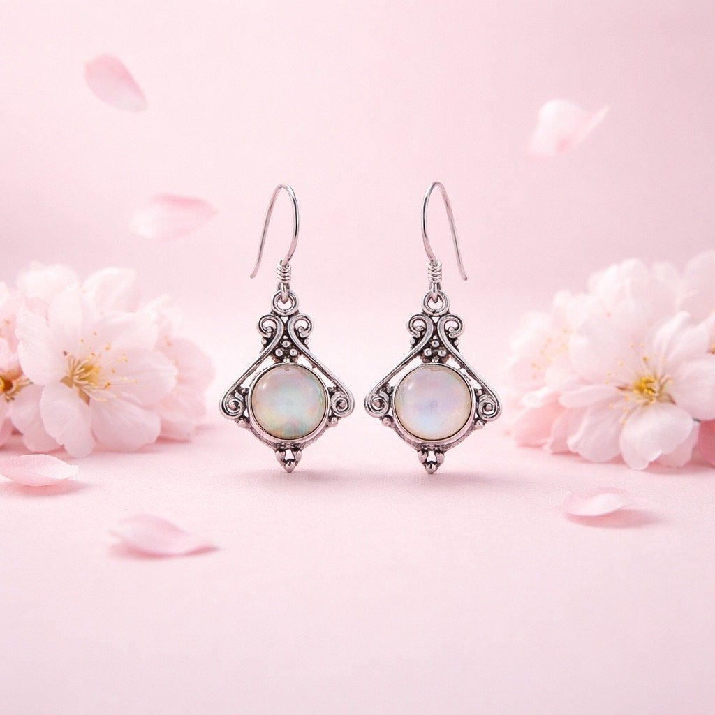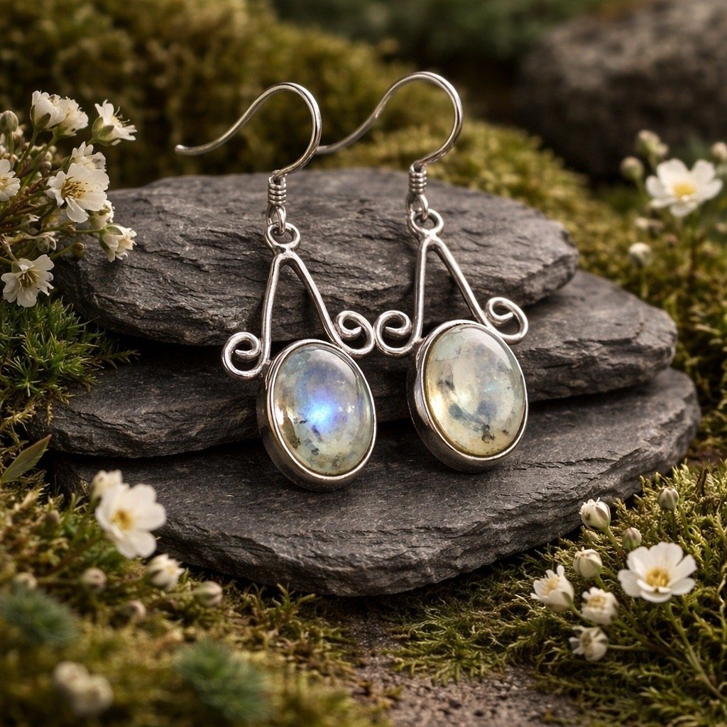 Élégantes boucles d’oreilles en argent 925 certifié avec une véritable pierre de lune.