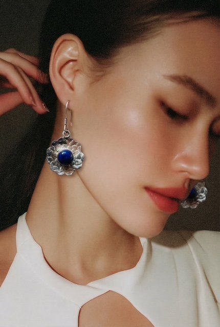 Élégantes boucles d’oreilles en argent 925 certifié avec une véritable pierre de lapis lazuli.