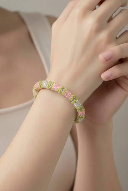 Le « Roll-on » : Ils n’ont pas de fermoir. Ils sont légèrement extensibles grâce au tissage au crochet, ce qui permet de les faire « rouler » sur la main pour les enfiler.