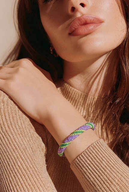 • Le « Roll-on » : Ils n’ont pas de fermoir. Ils sont légèrement extensibles grâce au tissage au crochet, ce qui permet de les faire « rouler » sur la main pour les enfiler.